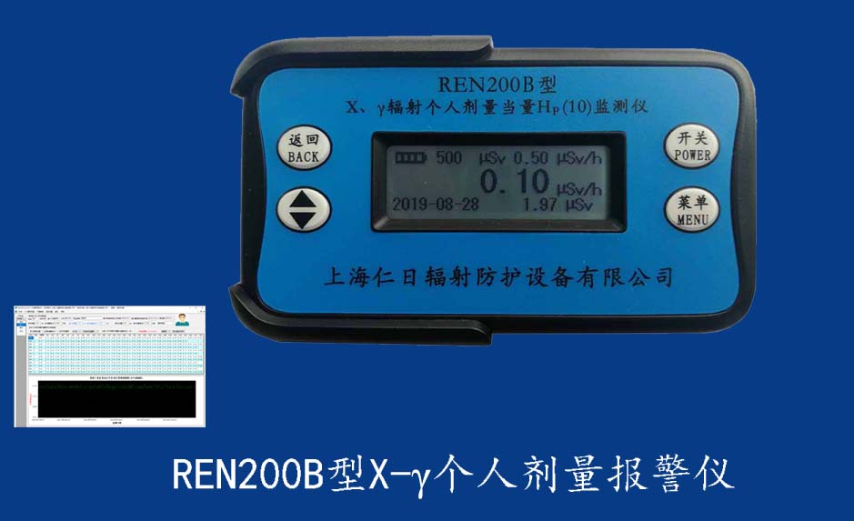 REN200A 個(gè)人報(bào)警儀REN200A型X、γ輻射個(gè)人劑量當(dāng)量HP(10)監(jiān)測(cè)儀(簡(jiǎn)稱:個(gè)人劑量報(bào)警儀)內(nèi)置高靈敏度蓋格計(jì)數(shù)管為探測(cè)器,主要用來監(jiān)測(cè)各種放射性工作場(chǎng)所的X、γ以及硬β射線的輻射,具有響應(yīng)快,測(cè)量范圍寬的特點(diǎn)。能顯示工作場(chǎng)所的劑量當(dāng)量率和累積劑量,更換電池時(shí),日期及累積數(shù)據(jù)能永久保存。可選配RenRiPersonal個(gè)人劑量管理軟件,該軟件可存儲(chǔ)多個(gè)人的歷史數(shù)據(jù),能記錄日累積、月累積、年累積、輻照時(shí)長、計(jì)算平均劑量率、扣除或不扣除本底輻射,且以文字和圖譜的方式展現(xiàn)數(shù)據(jù)。廣泛應(yīng)用于核電站、加速器、鋼鐵、化工、同位素應(yīng)用、工業(yè)X、γ無損探傷、放射醫(yī)療、鈷源治療、γ輻照、放射性實(shí)驗(yàn)室、核設(shè)施周圍環(huán)境監(jiān)測(cè)等領(lǐng)域中的工作人員進(jìn)行個(gè)人安全